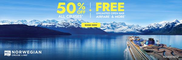 Norwegian Cruises: 50% off & FREE at Sea!